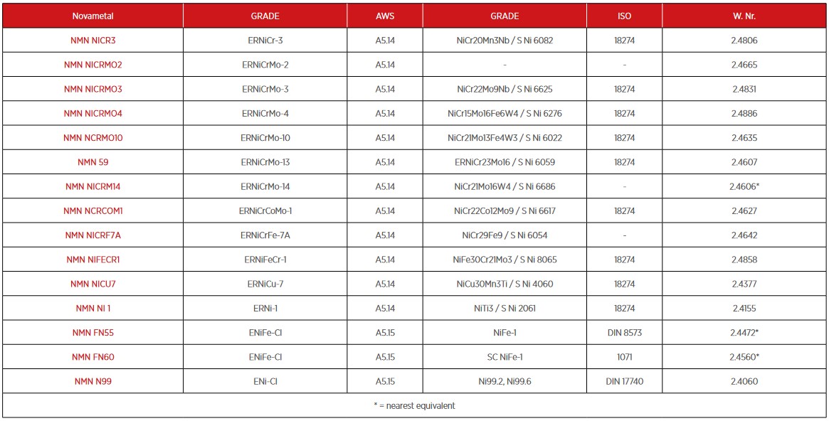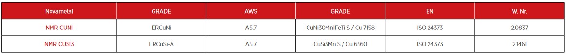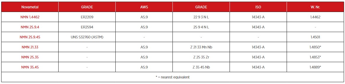 Ορισμένες εξειδικευμένες εφαρμογές απαιτούν την χρήση σύρματος συγκόλλησης νικελίου, χαλκού ή ειδικών ποιοτήτων κράματος, προϊόντα που έχουν γίνει ειδικότητες της Novametal. Η ομάδα των μηχανικών μας έχει μελετήσει και βελτιώσει συγκεκριμένες διαδικασίες παραγωγής για να μας επιτρέψει να παρέχουμε ένα σύρμα που εγγυάται το υψηλότερο επίπεδο ποιότητας και συγκολλησιμότητας στις πιο απαιτητικές καταστάσεις.
